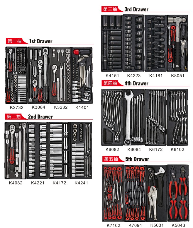 5 drawers tools x 344pcs