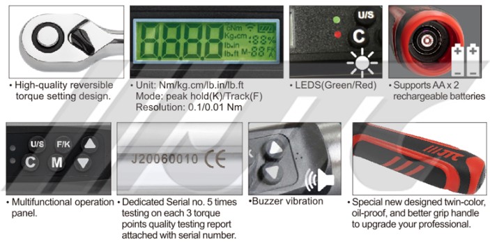 • Digital torque value readout with 30 data memory for recall torque editing.